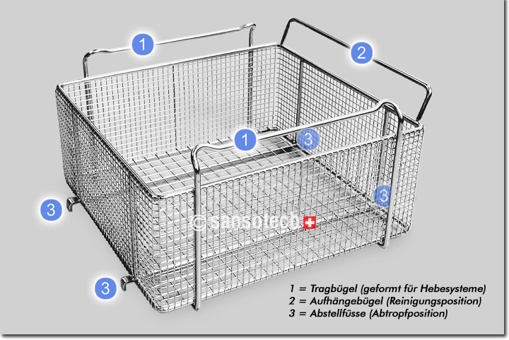 Vier Aufnahmen zum Positionieren des Korbes in der Reinigungs- bzw. Abtropfphase | |